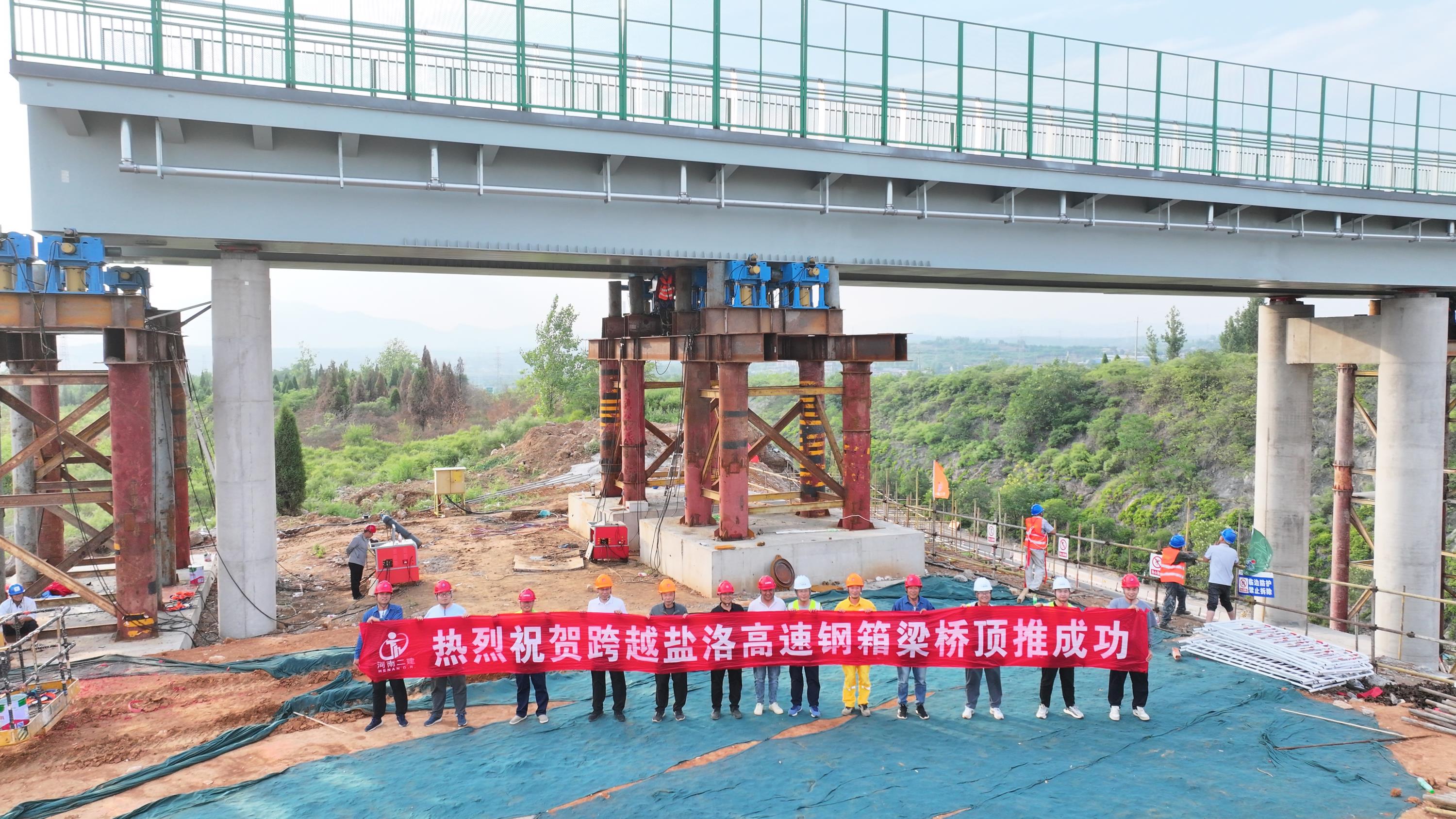 安装市政分公司华润电力登封热网项目跨盐洛高速钢箱梁桥顶推成功